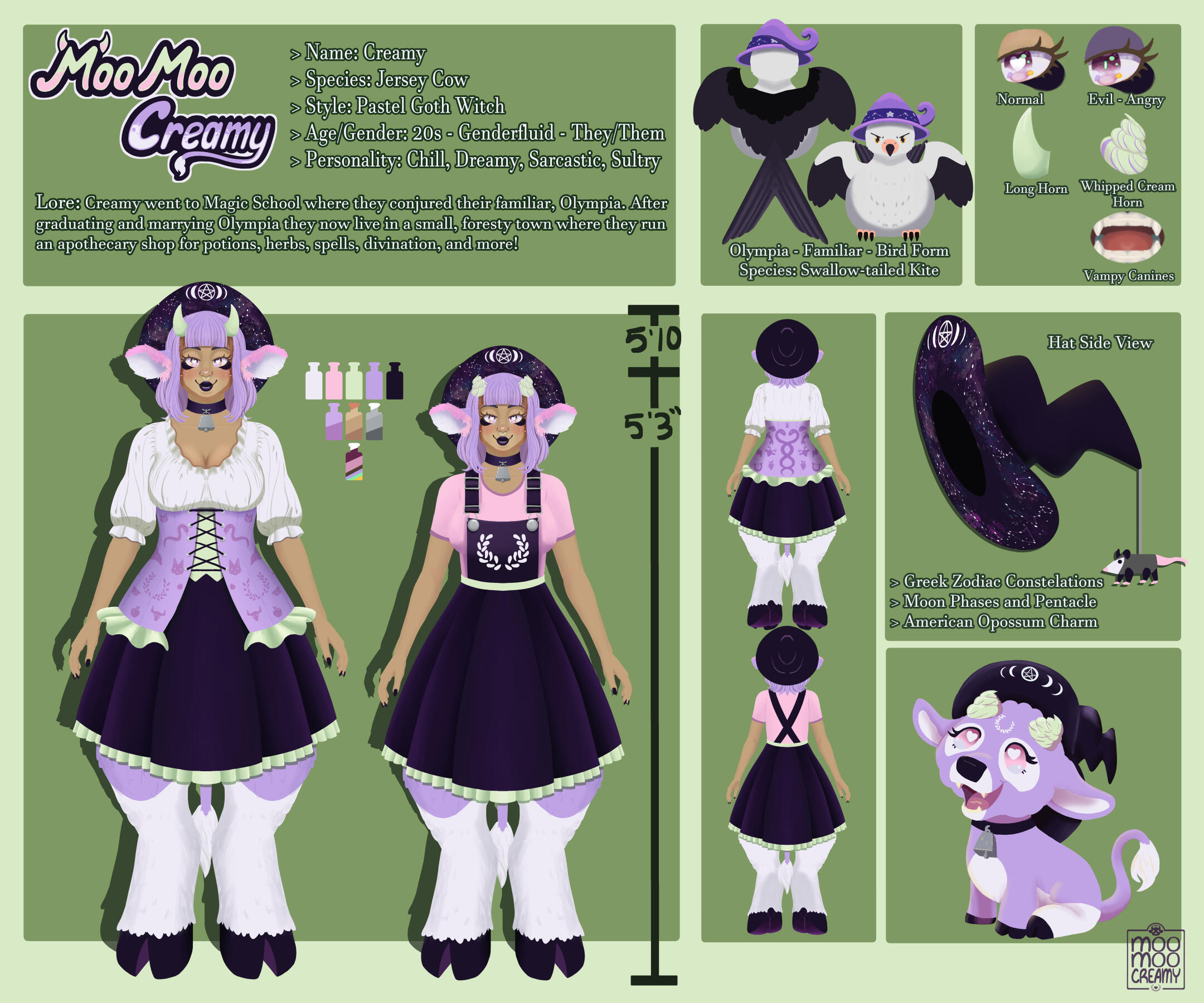 Howdy, howdy, howdy, I'm Locks. How are ya'? I'm the person behind Olympia. She is based off of me including being gender-fluid and pansexual. She also has my sassy and bratty attitude, even though I ham it up a bit for the camera. I am married to Jelly, the person behind Creamy, and I am also a Hellenic pagan witch! I'm a full-time civil engineer, but I am not your engineer! I have also studied history and science as a hobby. Personality wise, I am a shy extravert. Creamy usually opens the gateways of friendships for me and I carry it on from there! I love chatting with people, especially new friends!When Creamy gets burnt out I will gladly talk your ear off, haha! I LOVE history, science, and video games! If you want to chat about these things I will chat your ear off all day long! I love it when people ask me to research topics of interest for them because it means I get to go on a Wikipedia binge spree. If you ever want to chat or collab, hit me up! I got into VTubing because it sounded like a fun way to make new friends! I help Creamy with all sorts of technical things from modding, to stream support, running panels, and more! You can catch me live on their page since we stream on the same channel, @moomoocreamy.
