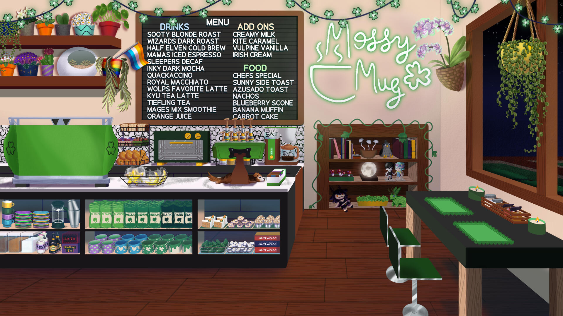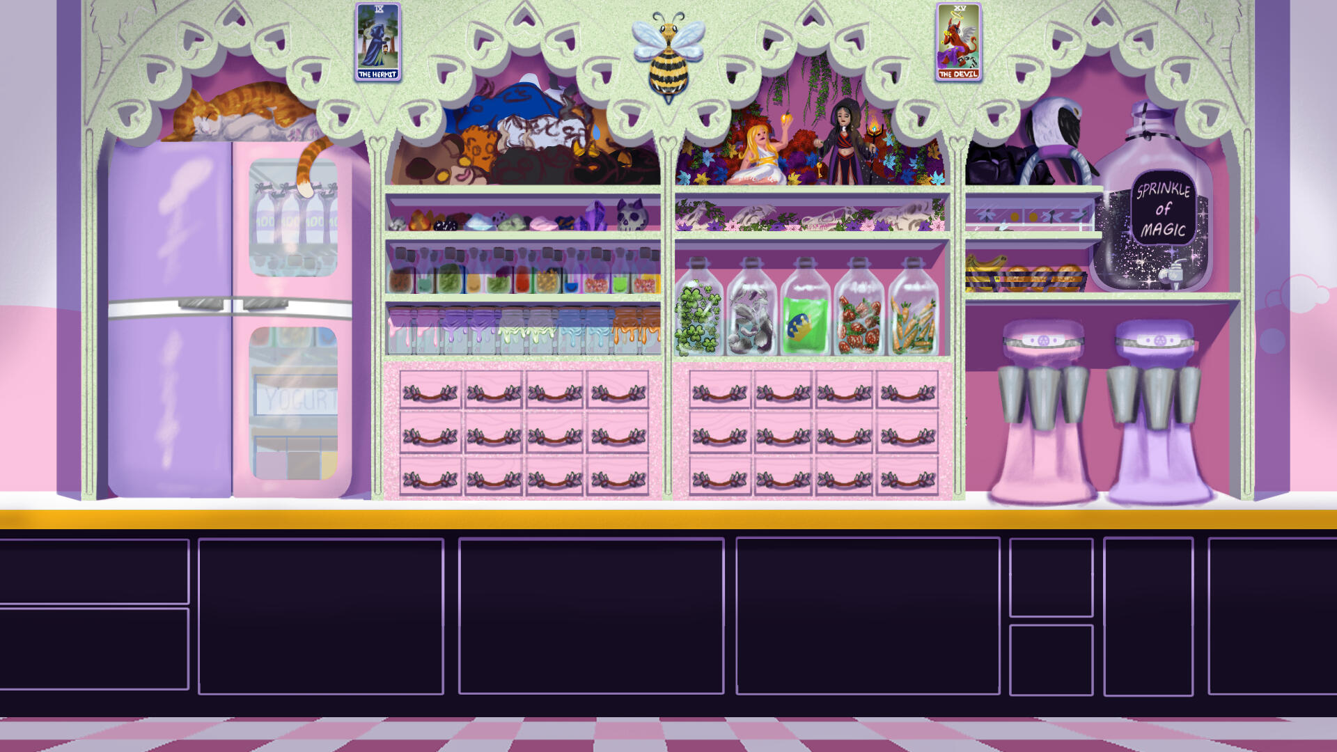 My history is too long to get into, but uh- back in the 1920's I used to run a bar just like this one. Even though prohibition is over, it reminds me of the good ol' days of running liquor with the gals. The rivals got to me one night and, well- let's just say I went flying for the first time that night. I don't remember much after that, but suddenly I felt a strong call from someone. Imagine my surprise when I came to again and I was a bird flying down at Mach speed towards this cow. Turns out they were a young witch calling forth a familiar. So, that became my new life. Now, I run The Milk Shop with Creamy. Here we whip up milkshake potions and all sorts of spells and concoctions for the local villagers! Behind the shop, I run the bar where I serve any type of downers or uppers you need, y'dig? We have a few alley cats out back that like to peruse our more "adult selection." Please inquire within for access to the dumpster. Must be an adult and pass the vibe check for access!