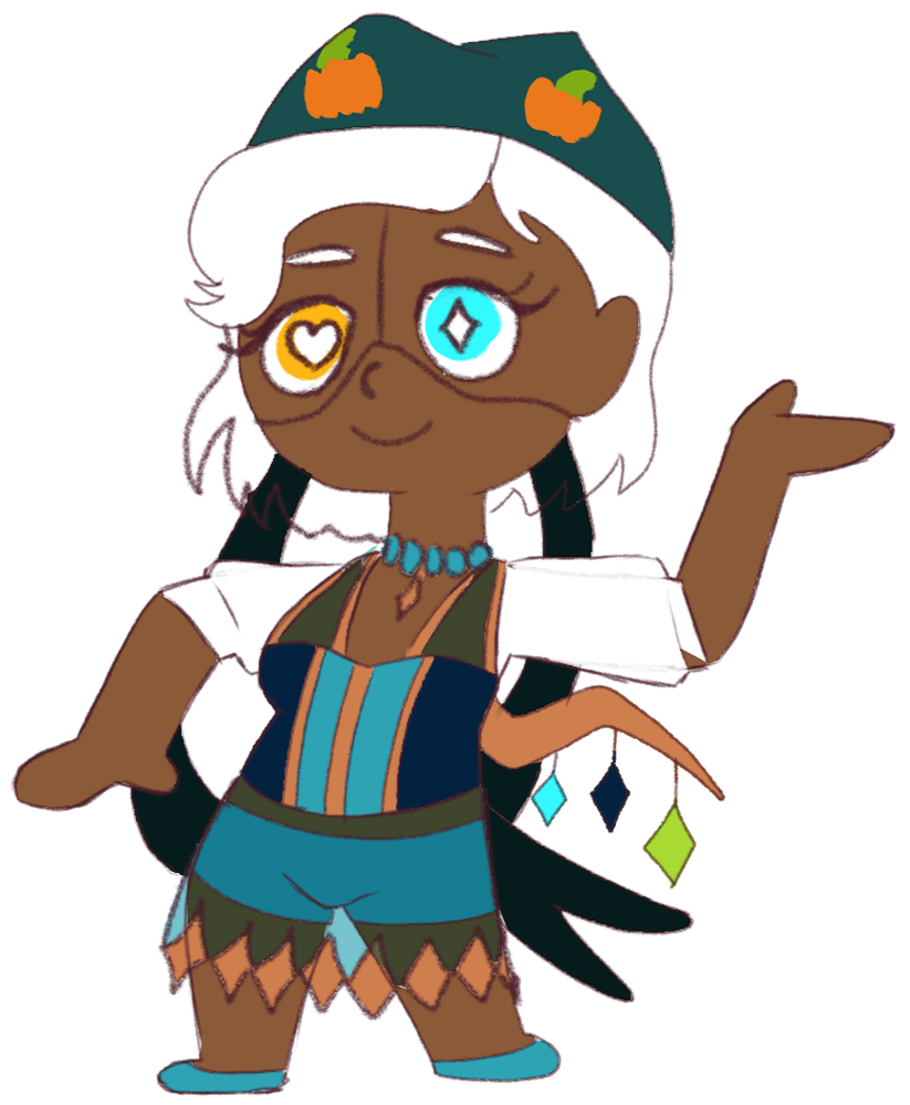 While working on Creamy's 3.0, I decided to nix the character and instead start fresh. I had been missing my previous bunny branding and many of my personal characters are dragons. Thus, the dragon bunny was born! I was torn between going with a celestial theme or an autumnal theme, and ultimately decided to merge both. It was a struggle at first, but I think the color palette and mix of pumpkins and stars came together well.