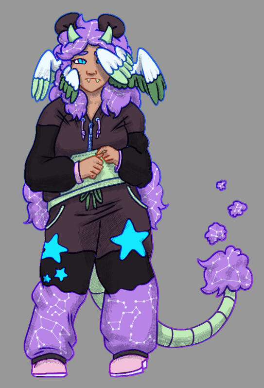 Meowdy, I'm Jelly, the human behind the brand! Jelly is heavily based on me in many ways, including being gender-fluid and novosexual, aesthetically pastel goth and autumnal, being married to Olympia, and being a witch. Yup! I am a Hellenic Pagan Witch in real life! It's not just a bit for the character, haha. I've been practicing witchcraft for about 5 years and even ran a little witch coven at my university! I like to do tarot on stream on request. I still rely on the booklets since I read tarot casually, so it takes me a bit to get the full picture. Once I do, though, my intuition is usually on the mark! I am a biologist and have also studied Art and Psychology in university. Personality wise, I am an introvert. I love spending time with friends, but I get burnt out easily and tend to take breaks from the online world pretty frequently. When streaming, I intensify how I am naturally for the sake of entertainment. So, if you like how I act on stream you'll like me off stream too! I have too many hobbies, mostly surrounding art and games. That's how I ended up VTubing because I wanted a new artistic outlet and to meet new people! I really didn't expect to grow my community and circle of friends so quickly. I honestly expected to stream to myself for a whole year or two before ever being noticed. Luck and chaos have brought all of you lovely people to me, and I am so grateful to have met you all!