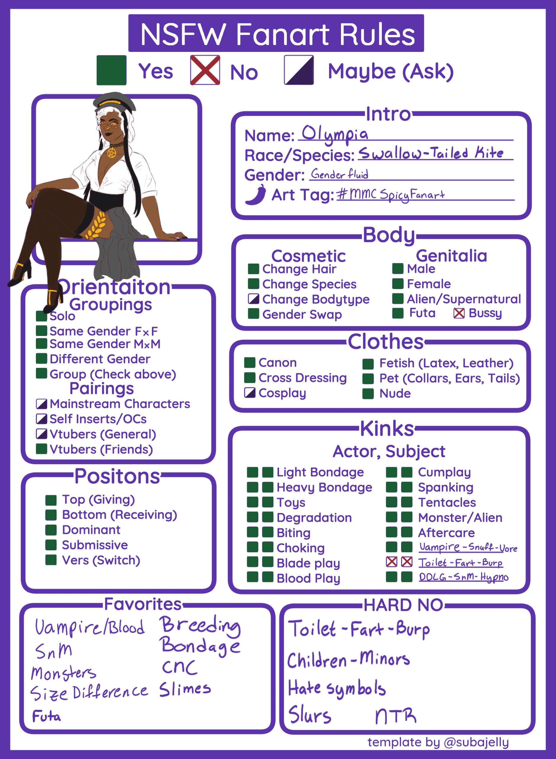 Do not draw Masc! Olympia nor Masc! Jelly with female genitalia.