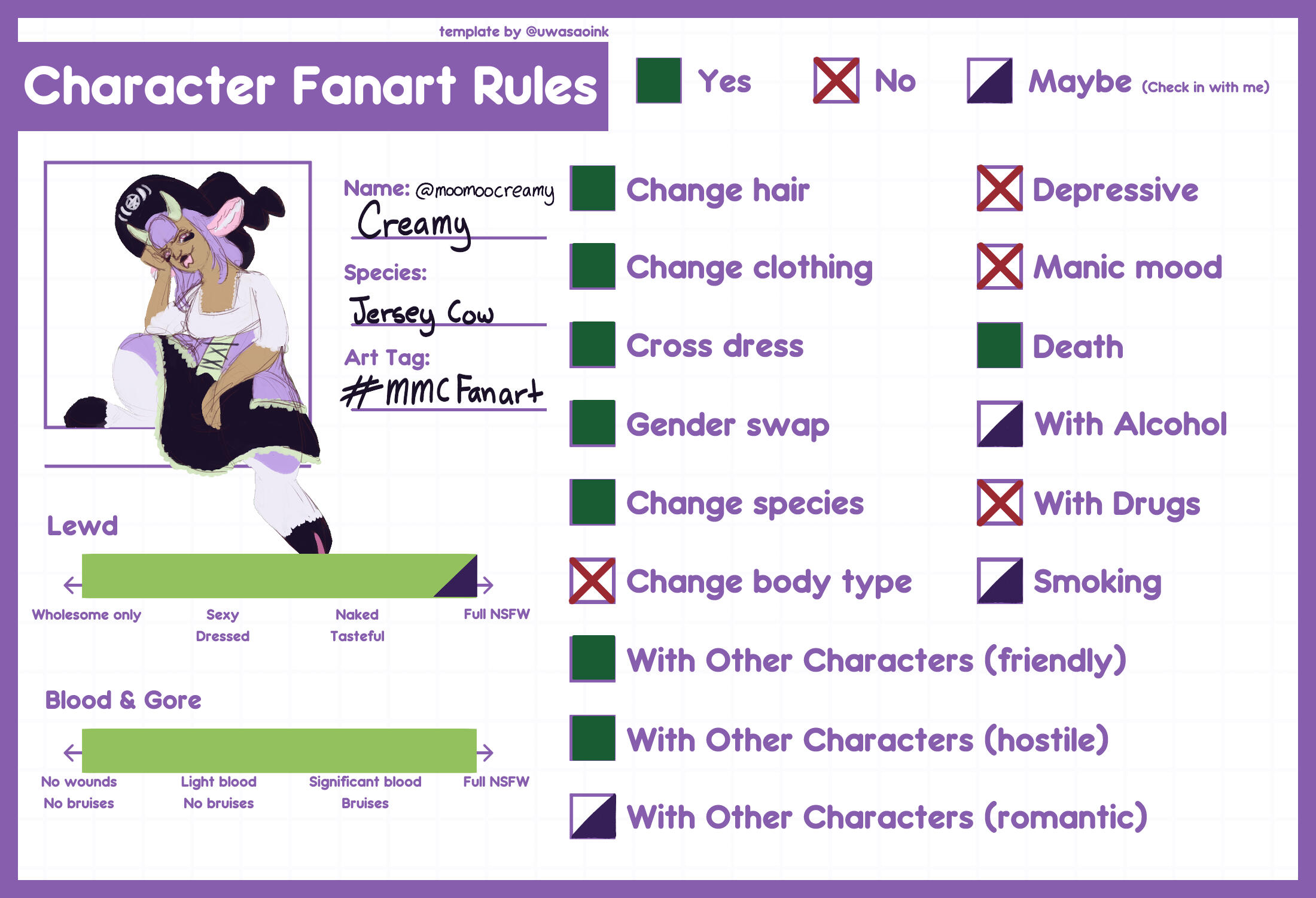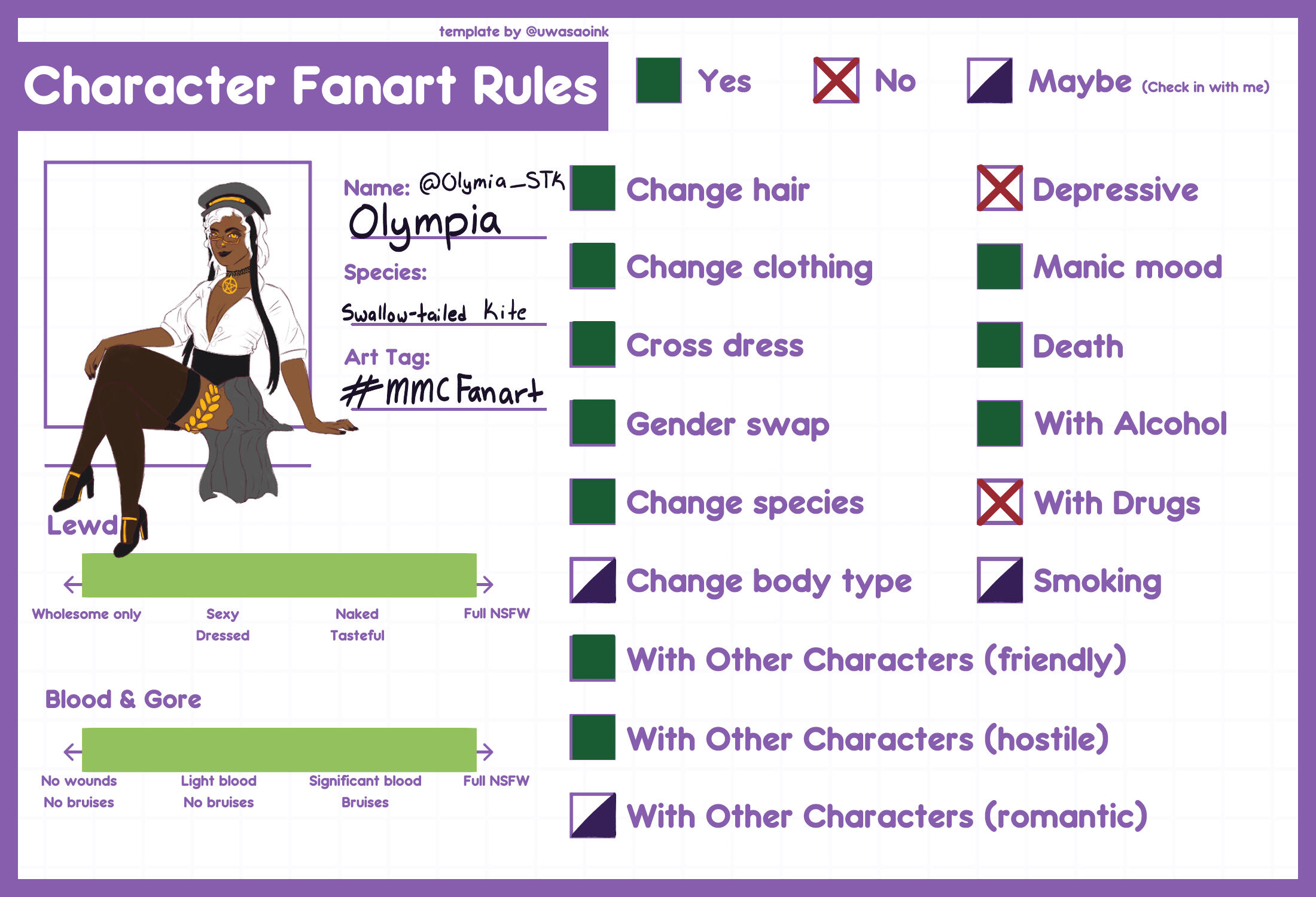 * Using my artwork as direct references for your own that results in blatant “copying” or tracing without proper credits.